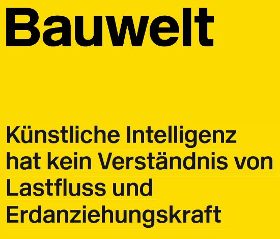 The interview is titled: ‘Künstliche Intelligenz hat kein Verständnis von Lastfluss und Erdanziehungskraft’ (Artificial Intelligence Has No Understanding of Load Paths or Gravity). The conversation examines how AI is already being integrated into design workflows and where it still faces fundamental limitations, particularly in understanding physical constraints, spatial logic, and material behavior.