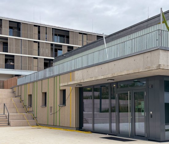 The Rötepark project – Residential Development with Daycare Centre and School Sports Hall in Waiblingen – is among the award winners of the ‘Beispielhaftes Bauen’ program organised by the Baden-Württemberg Chamber of Architects. We congratulate the architects ars herrmann + hornung (now ARS ENDEMANN) as well as all other project participants on this small neighbourhood developed using a timber hybrid construction method.