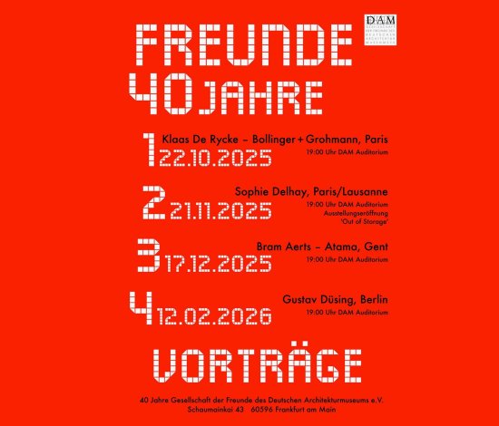 We have been invited, through the voice of Klaas De Rycke, to deliver a lecture at the Deutsches Architekturmuseum (DAM) on 22 October 2025 at 19:00, on the occasion of the 40th anniversary of the Gesellschaft der Freunde des DAM.