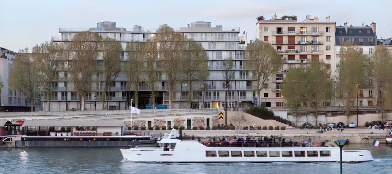Das Gebäude befindet sich am Seine-Ufer in Paris mit Blick auf den Notre Dame, die "Ile St Louis" sowie den "Jardin des Plantes". Das Gebäude fügt sich in den komplexen städtischen Kontext der Wohnbauten aus den 70er bis 90er Jahren und einer Reihe von Haussmannschen Gebäuden ein.