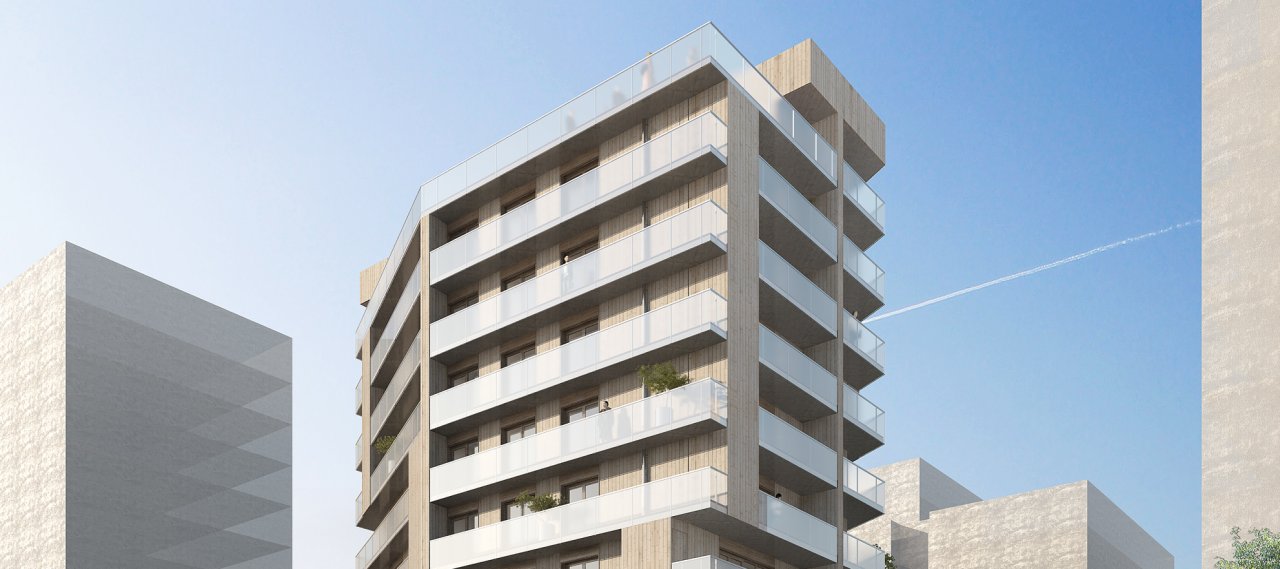 The whole neighbourhood is under very strong sustainable development requirements. Both buildings are designed at an angle to the street. Their compactness ensures that large landscaped green spaces will be at the heart of the block. Building CI4 has a ground floor to be partially used for commercial activities and nine floors of housing with a shared rooftop terrace. Building CK2 features 11 floors of housing units. Neither building has a basement.
