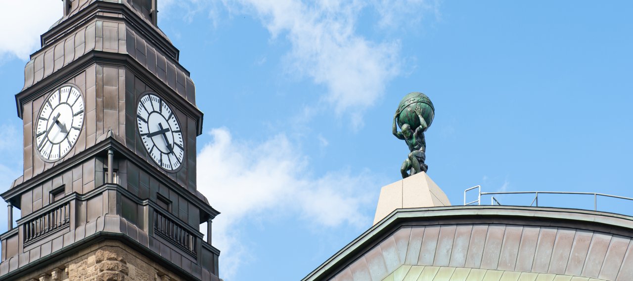 After 80 years, the former landmark of Hamburg's main railway station has been returned to its original position in an elaborate restoration. The ‘Atlas Sculpture’, which stood with an identical figure on the historic axis of the concourse until the 1940s, was destroyed during the Second World War. Railway workers rescued the figures, joined them together and erected the Atlas in the former railway housing estate in Wilhelmsburg. The housing association ‘Vonovia’, the current owner of the estate, had the 2.80 m high, 270 kg sculpture restored and then returned it to Deutsche Bahn and Hamburg Central Station.