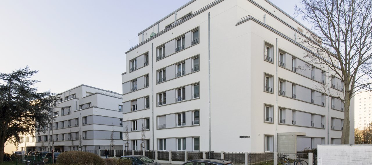 The new buildings of ABG Frankfurt Holding GmbH and Wohnheim GmbH consist of two four-storey residential buildings. The top floors are designed with staggered storeys. The basement is used as a shared underground car park. Both buildings are constructed with reinforced concrete and designed as passive houses.