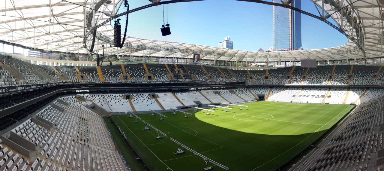 For the construction of the historic stadium on the Bosphorus, in the area between Taksim Square and Dolmabahçe Palace, the city authorization had specified a very low roof pitch and height development. For the special situation, a support system with a low overall height and pressure- and bending-resistant radial beams was developed. For the first time, a completely pre-assembled, rigid roof area of approx. 1000 t was raised in the hydraulic lifting installation.