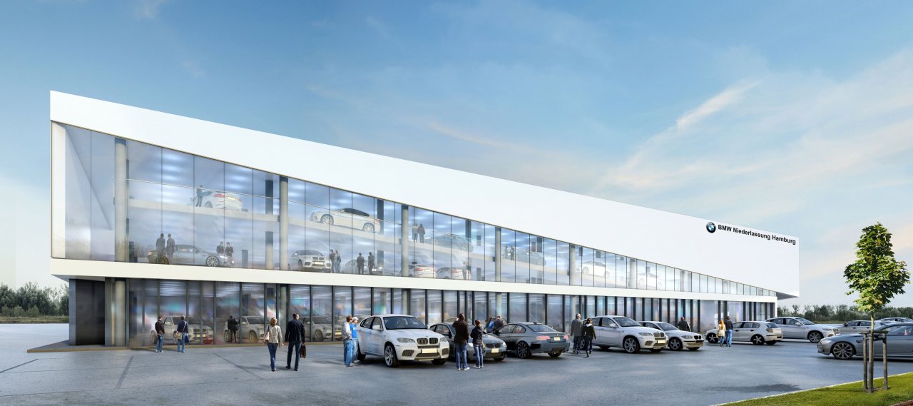 The BMW Used Car Centre“ GAZ“, located in Hamburg-Barsbüttel on the A1 motorway, was part of the BMW’s Hamburg strategy to newly build, renovate or expand all subsidiaries in Hamburg within in the space of three years. The new GAZ has gross a floor area of 27,000 m² divided into display space for approximately 450 used cars, office and garage space.