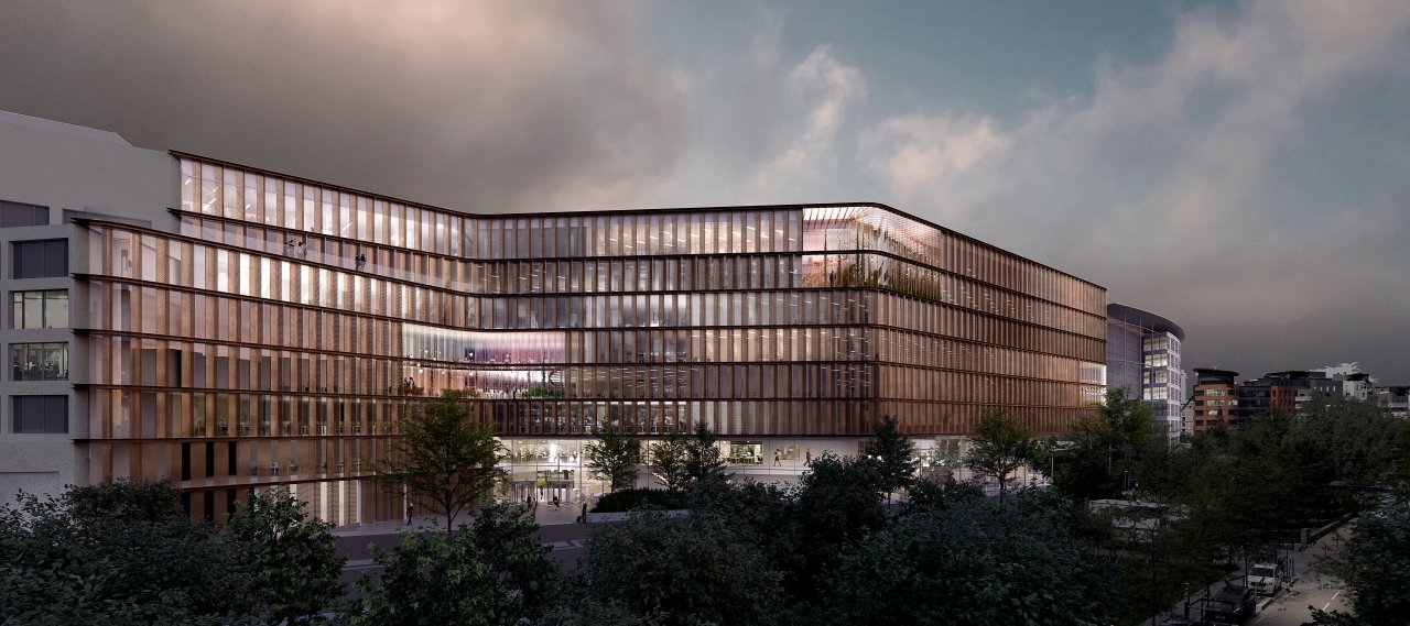 The Touzet tertiary campus project is located in Saint-Ouen (93) and is part of a plot of approximately 17,717 m² near the ring road, replacing an office building built in 1990. It is a 65,000 m² office complex that includes two buildings, a reception and concierge area, a restaurant, a sports hall and an auditorium/business centre.