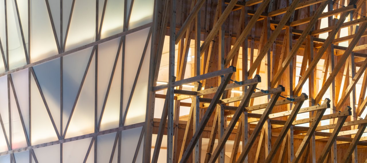 | Facts | GFA: 995 m² | Height: 13.7 m | Level: 4 | Timber content Number of pieces of unmachined wood used in construction: 3,000 | |