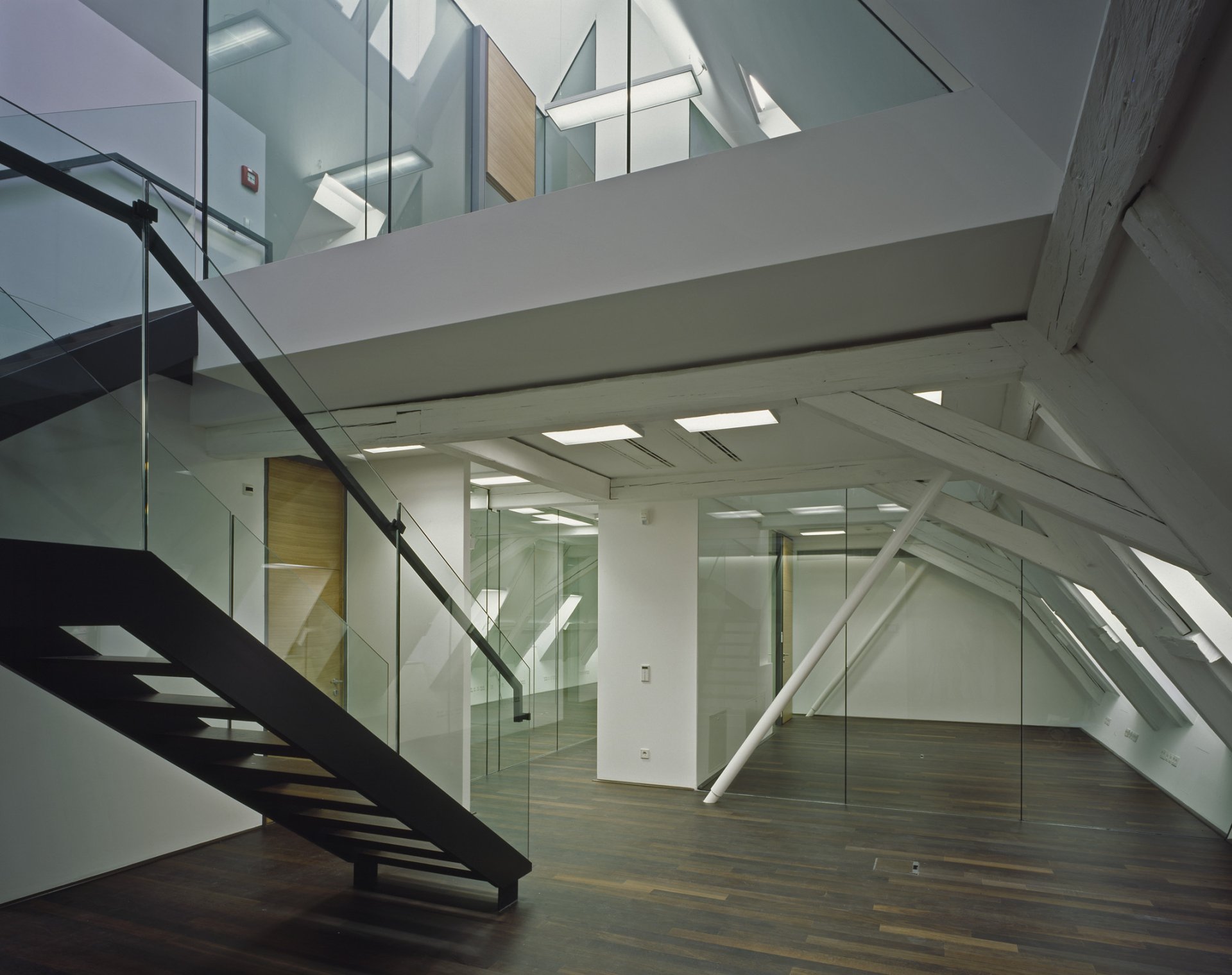 Those parts of the truss, which were still in its original condition were obtained by the Federal Heritage Office and strengthened and upgraded with the steel structure. The top storey was upgraded by the fabrication of a wood-concrete composite construction. An office and residential facility operates on two levels in the new construction. The lift was extended to the attic and basement to improve accessibility. The existing building had a very efficient structure and was in very good building condition and therefore only minor upgrades were necessary.