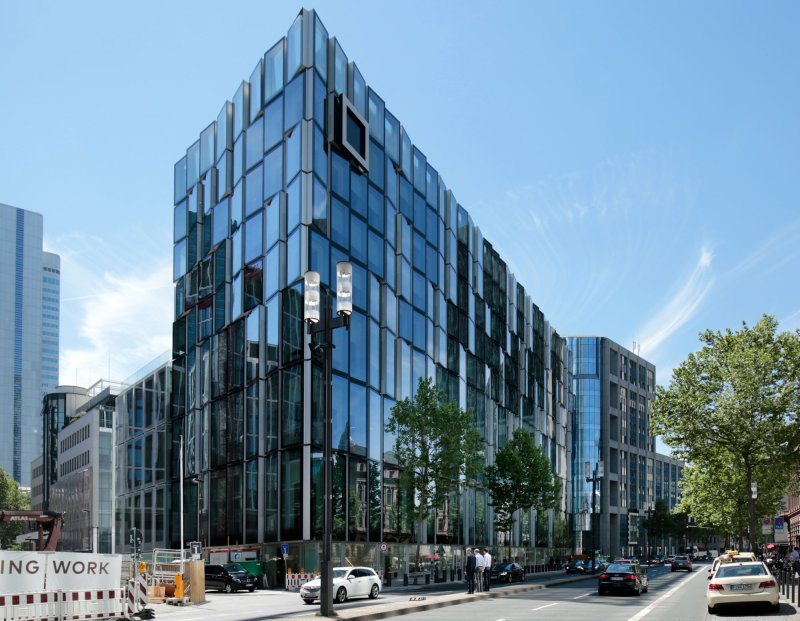 In the city centre of Frankfurt’s financial district, the new office high-rise ‘Deutscher Bank Campus’ with three lower and nine upper levels is located on a property along the Mainzer Landstraße. Several existing buildings along the Mainzer Landstraße have been demolished to make room for a new 9-storey high-rise with approx. 18,000 m² GFA. An adjacent existing building (designed by KSP Jürgen Engel Architects in cooperation with B+G and completed in 2003) was included in the planning process in order to connect the two buildings.