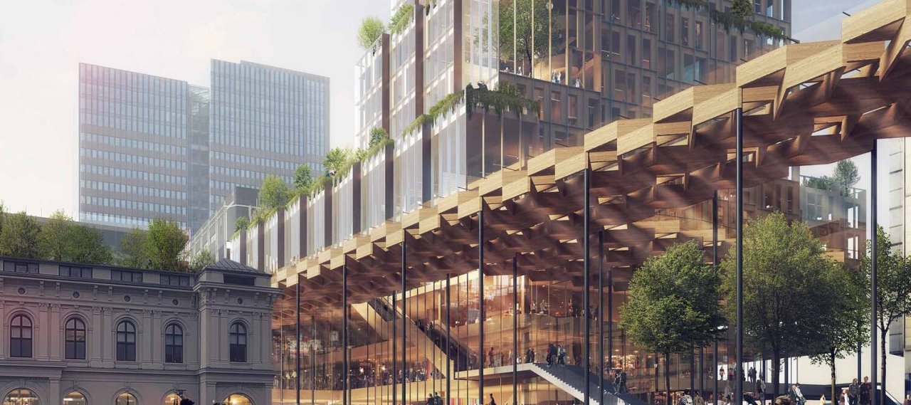 By combining tradition and innovation, Fjordporten at Oslo's central station combines traffic, work, leisure, culture and business into a future-oriented hub.