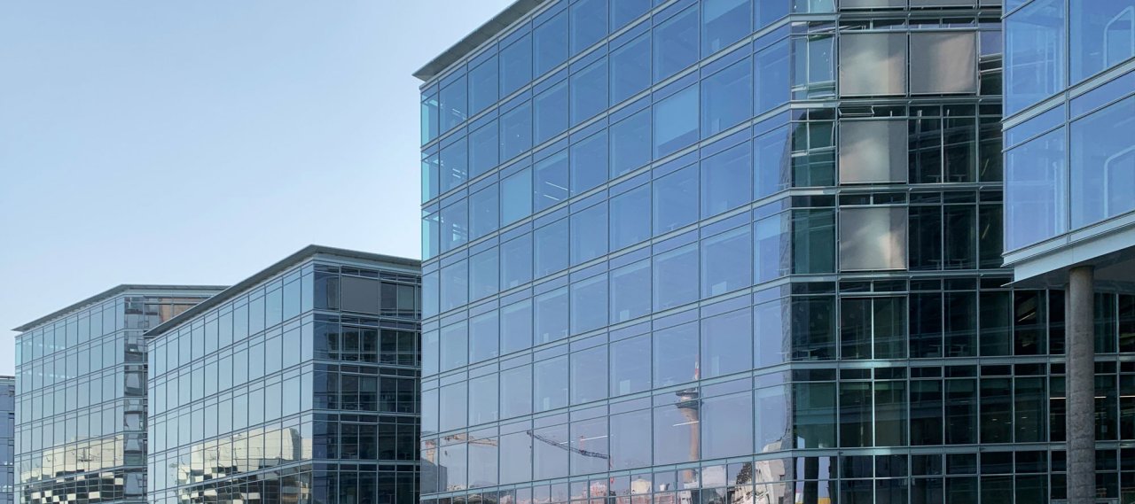 The Immofinanz Group has realized the FLOAT office complex at the south end of the Media Harbour. The office building is 225 m long and consists of six individual 8-storey buildings connected via the 3-storey ground floors and a fully-glazed connection building. The complex forms a continuous front with a glazed nose and a solar protection wall facing the busy harbor area.
