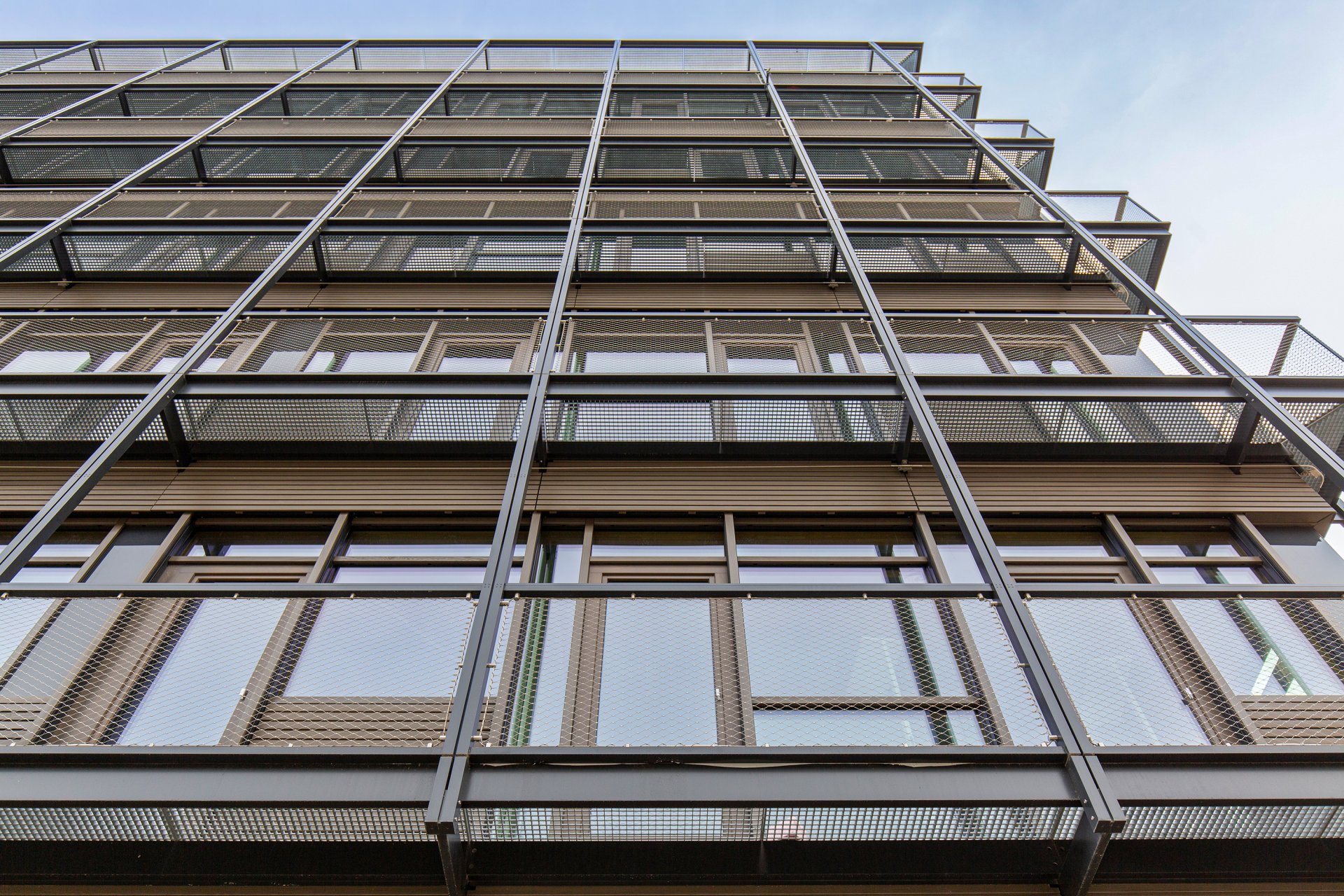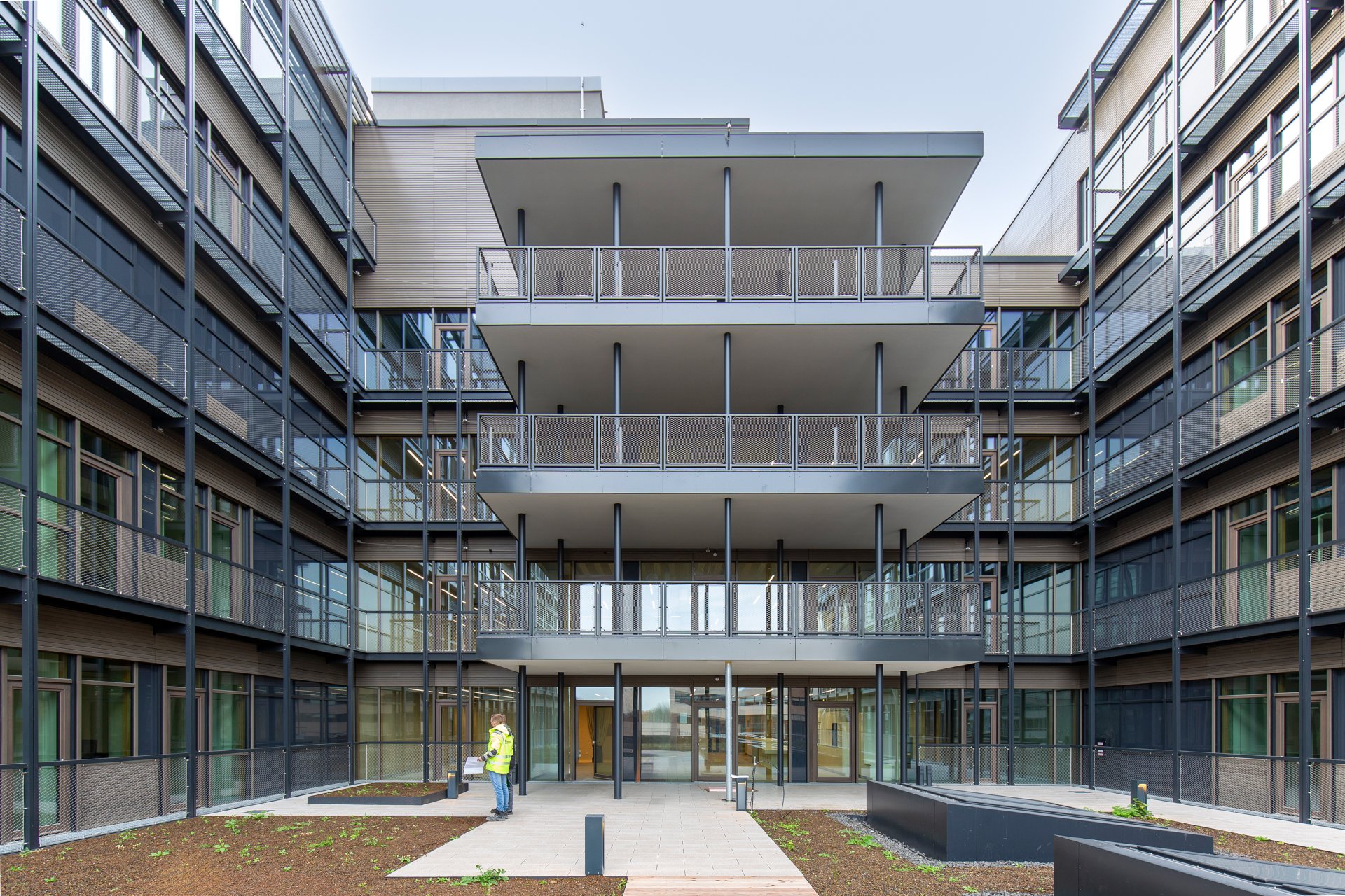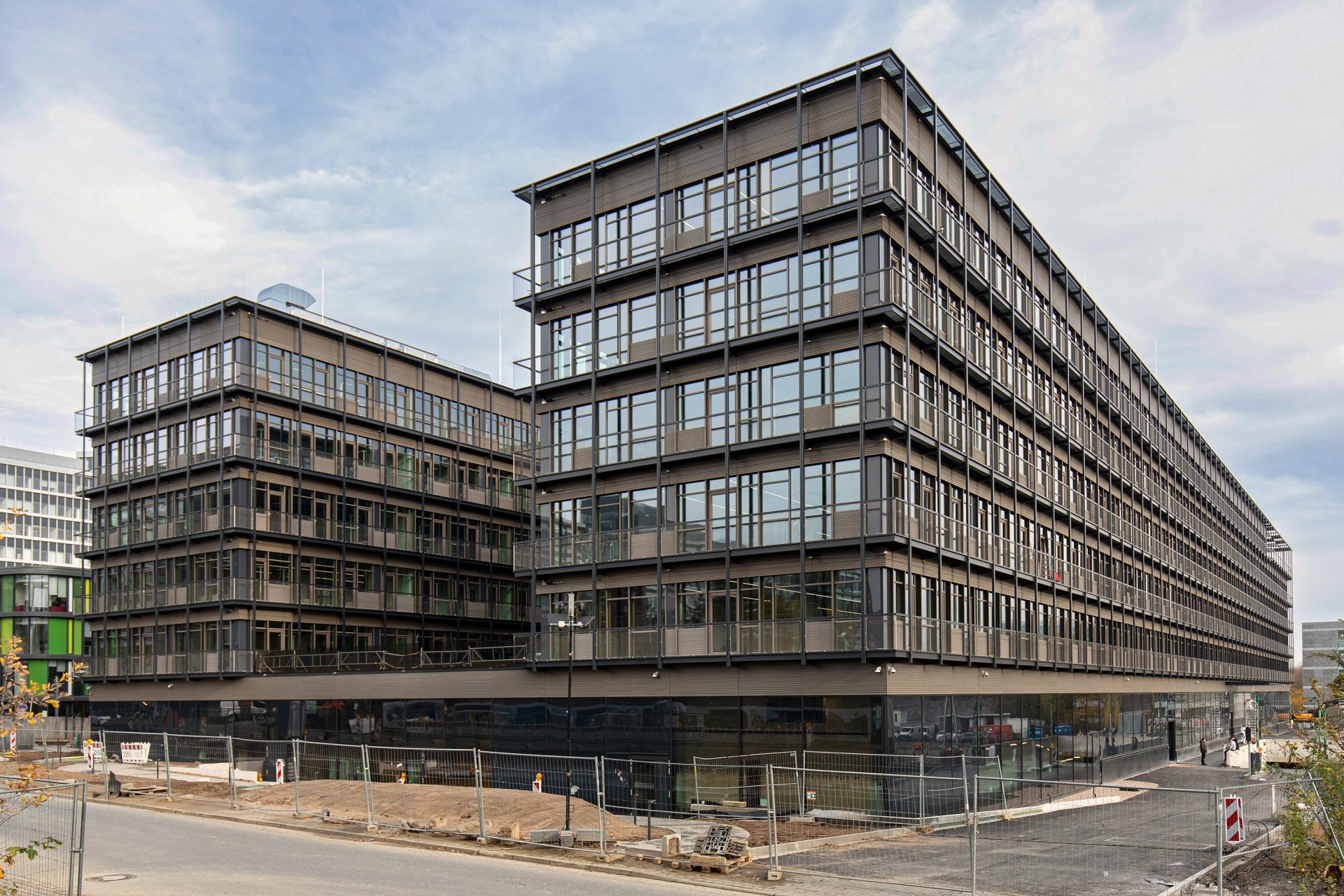 A compact campus for the Deutsche Gesellschaft für Internationale Zusammenarbeit (GIZ) GmbH has been built on a 53,000 m² area in Eschborn West. The building has six stories, with around 32,000 m² above ground and 21,000 m² underground. It includes communal areas, and flexible workspaces for about 1,000 employees. Additionally, two basement levels are included for car and bicycle parking, as well as storage and technical areas. The project was developed by PHOENIX, a company based in Frankfurt, and the design is by the Viennese architecture firm, Caramel, winner of an international architectural competition. The new building is a reinforced concrete skeleton construction. It meets the highest standards of the German Sustainable Building Council.