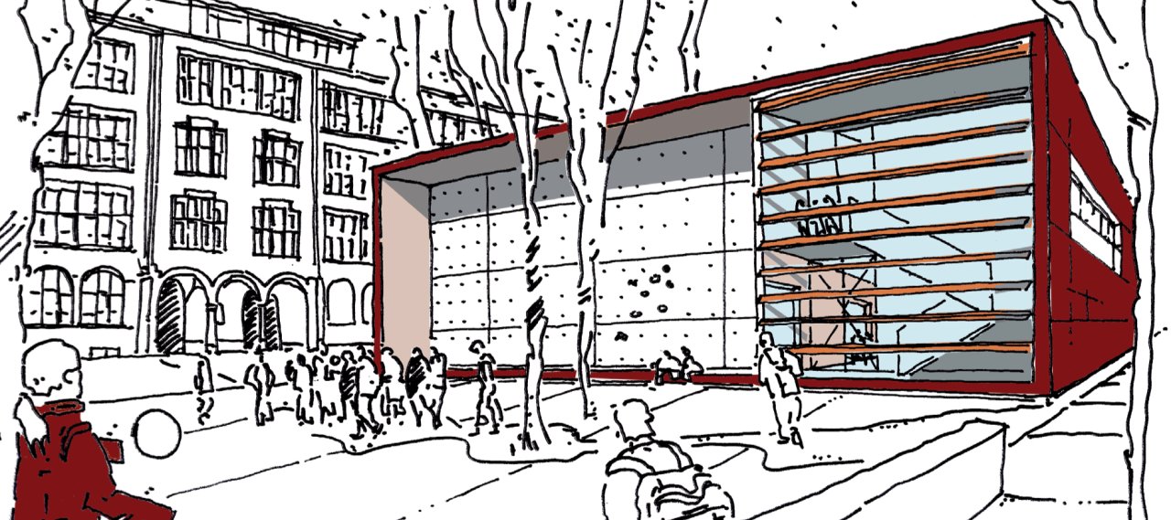 Der Entwurfsvorschlag von AS&P kommt mit einem kompakten rechteckigen Baukörper aus.