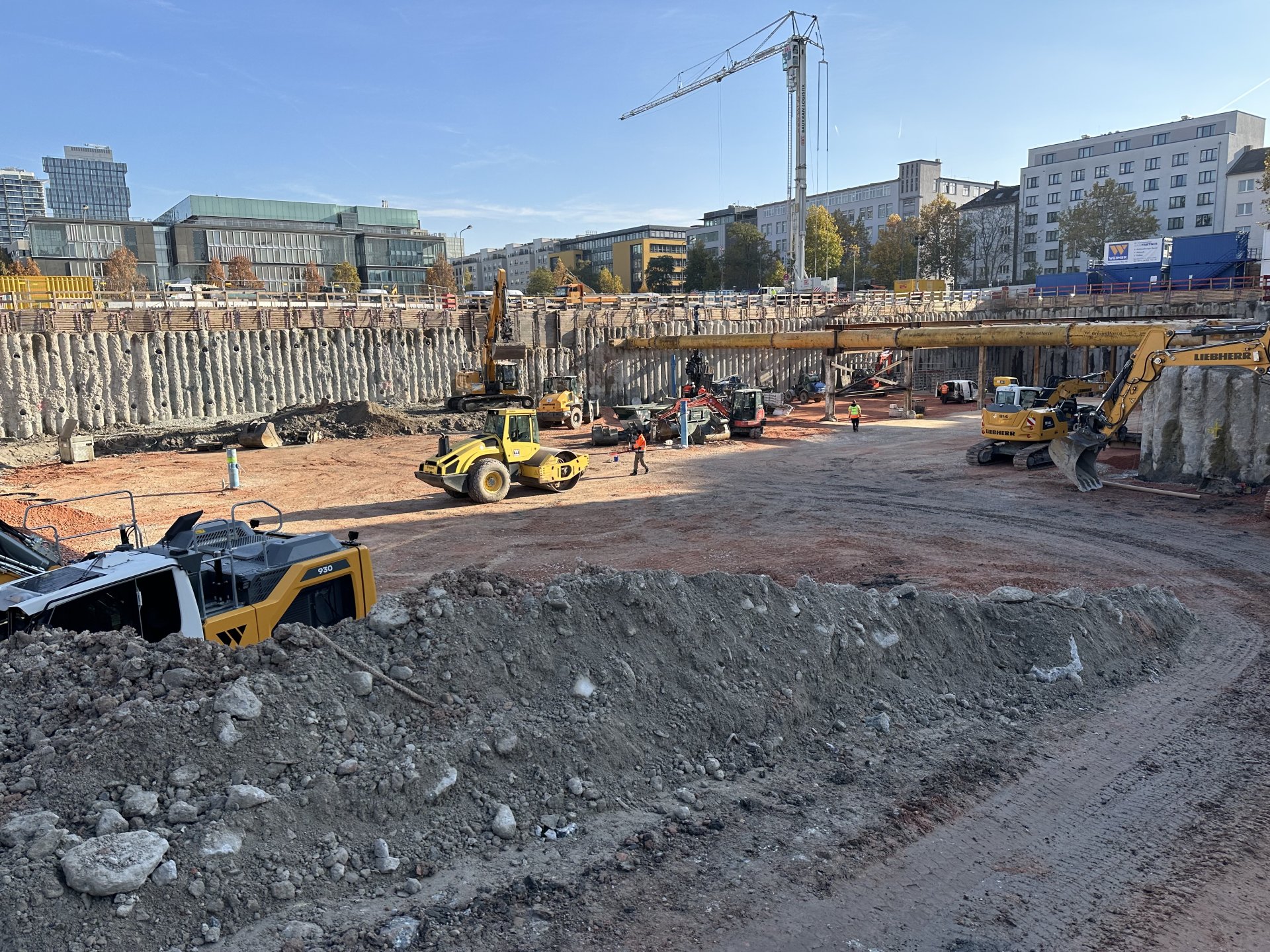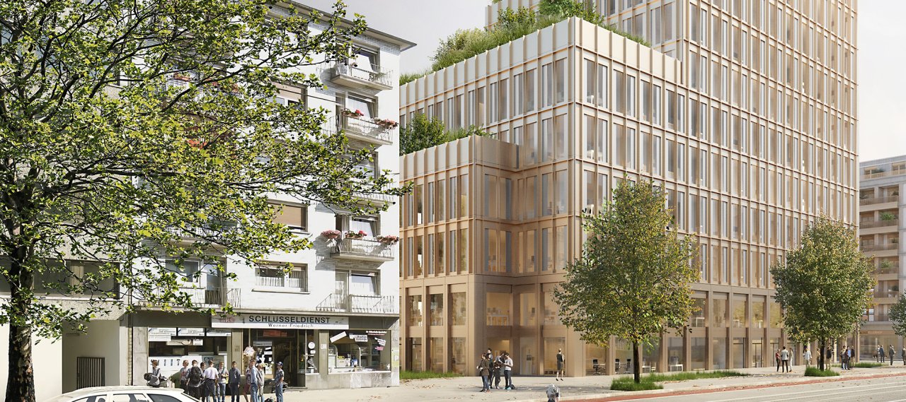 A new urban quarter is being built between Frankenallee and Mainzer Landstrasse in Frankfurt. Two new buildings will be erected on the site of the former headquarters of the ‘Frankfurter Allgemeine Zeitung’. ‘FAZ Nord’ will be an eight-storey residential building in reinforced concrete with a day-care centre on the ground floor. The 16-storey ‘FAZ Süd’ tower will be built using a hybrid timber construction method. The upper floors will house apartments, while the basement will be used for offices. The buildings are structurally separated from each other and stand on a shared two-storey underground car park.