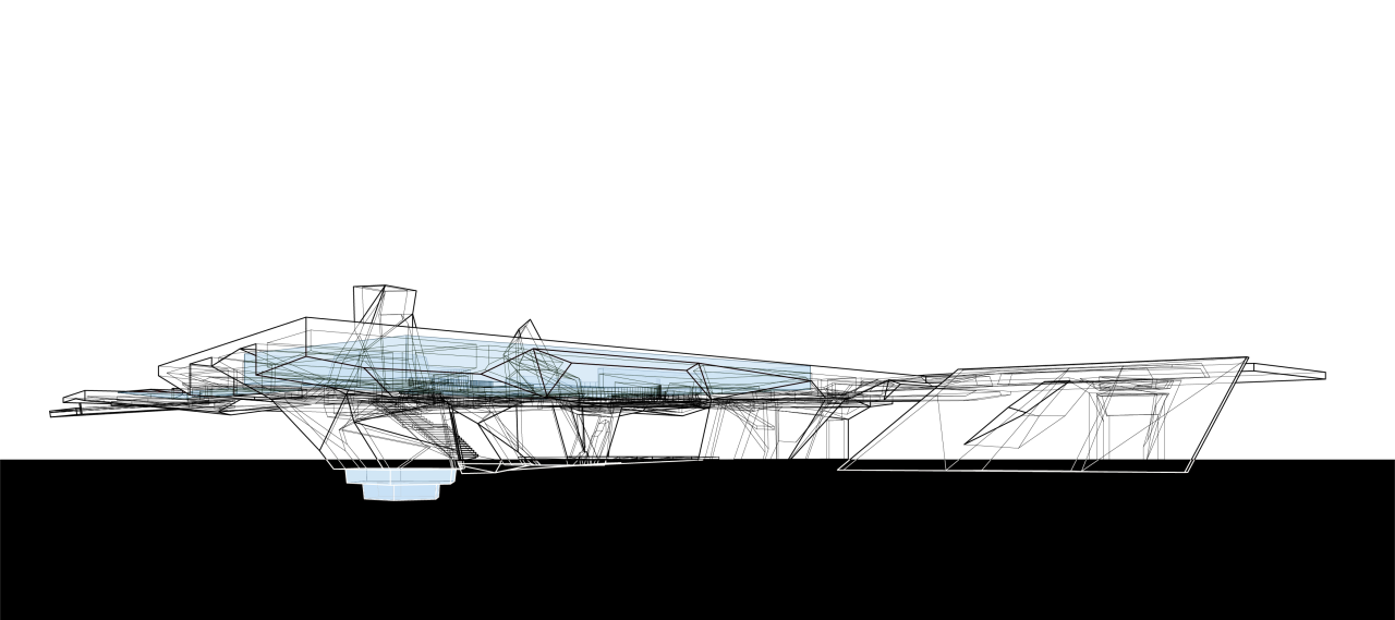 The roofed area of the "aquarium level", in which there are at the same time areas for games, fitness and events, has natural light all around.