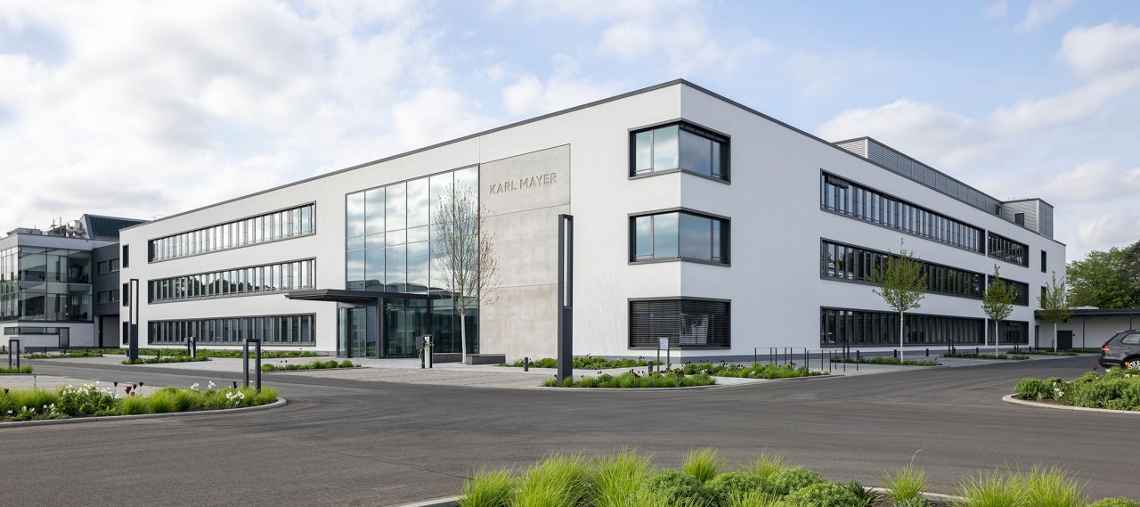 The textile machine factory KARL MAYER STOLL has had an office and administration building with a canteen built on its factory premises in Obertshausen, Germany. In addition to office space, the facility was equipped with a showroom for the family and company history and areas for workshops and company presentations.