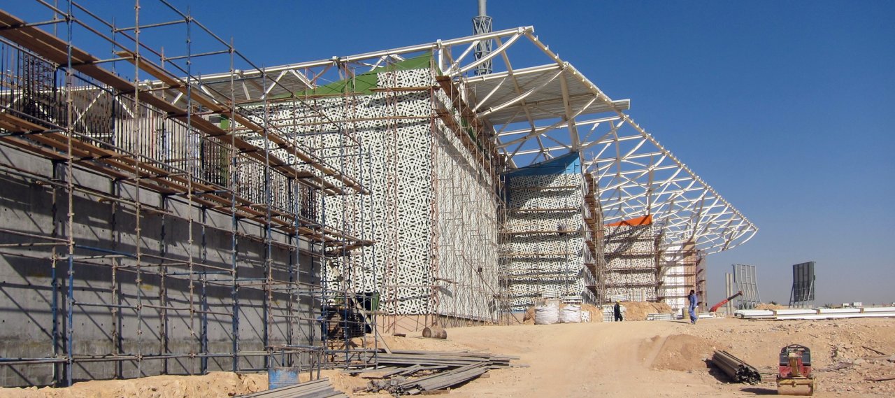 Resembling an artificially "built landscape", the science oasis stretches underneath a light roof structure, providing access to the wadi formerly located on the spot. An ample square serves as entrance to the complex whose rectangular shape is prescribed by the shopping mall in the southwest and the different buildings of the science centre situated in the northeast.