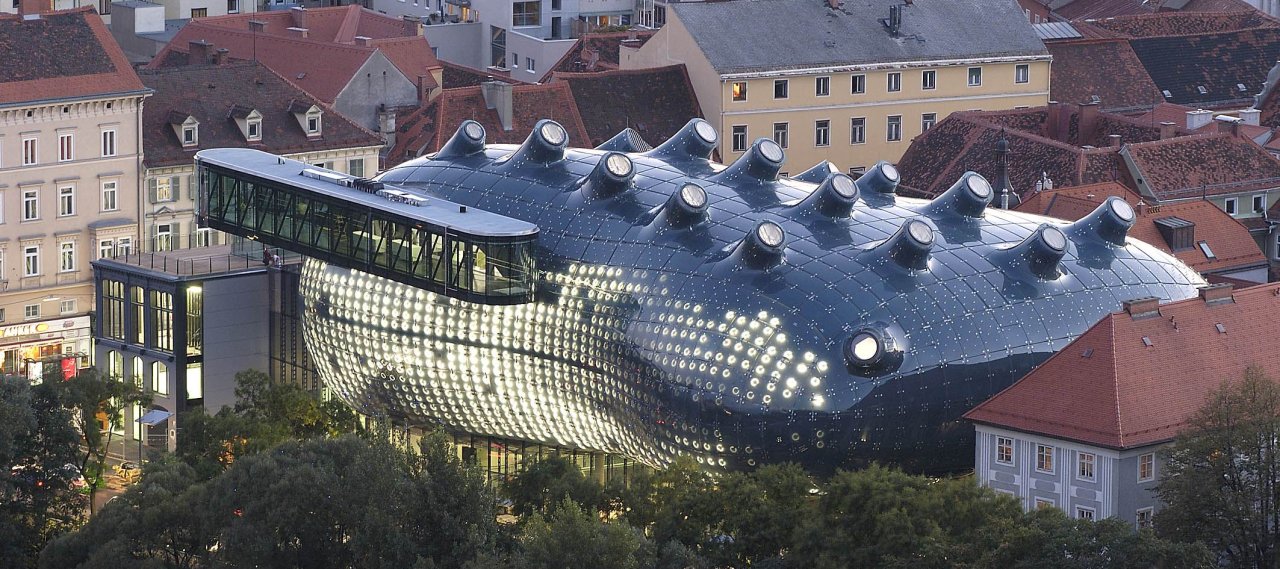 The Art Museum in the City of Graz is located neighbouring to the "Eisernes Haus" - the earliest cast iron building in Austria, which also provides access to the new building. In collaboration with the architect a method was developed which transferred the two-sided curved building shell from the architectural model to a digital 3D-model.