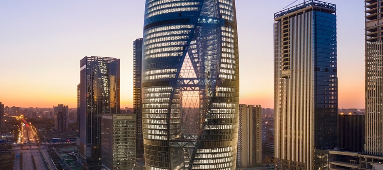 Within the Lize Financial Business District – a new business, residential and transport hub adjacent to Financial Road in southwest Beijing – Leeza Soho is located at the intersection of Lines 14 and 16 currently under-construction for the Beijing Subway rail network. Anchoring the new financial district, the 172,800 m² Leeza Soho design has evolved from its specific site conditions. Straddling the new subway tunnel that diagonally divides the site, the tower rises as a single volume divided into two halves on either side of the tunnel. A central atrium extends 190m through the full height of the building connecting both halves.