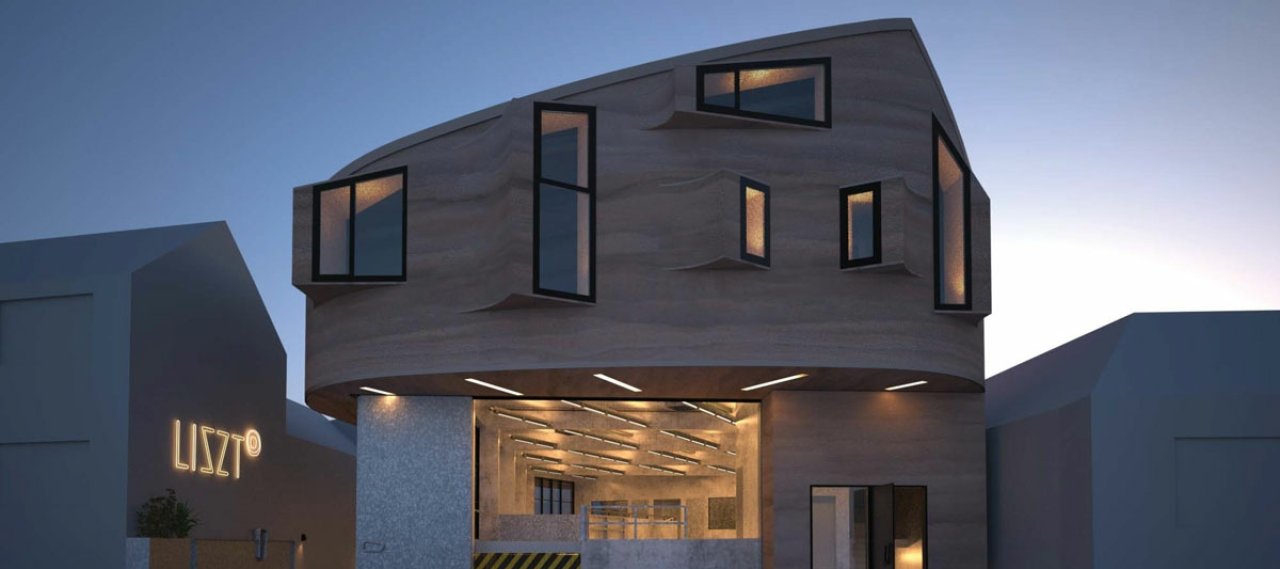 The lower two floors are planned as concrete with only a few columns along the facade and a gallery allowing flexible use in the production hall. A slab beam floor system with a span of 13m and 4m overhang covers the production hall, on which a steel frame structure is supported which forms the living spaces above.