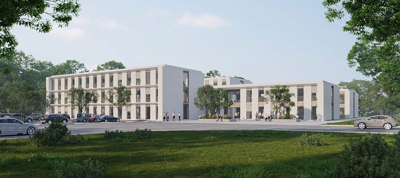 The new building is planned as a solid construction and will consist of five three-storey blocks containing research areas, administration rooms, and laboratories. The connecting areas between the blocks will be designed as terraces or photovoltaics. The top floor of the southern building will provide accommodation for temporary staff.