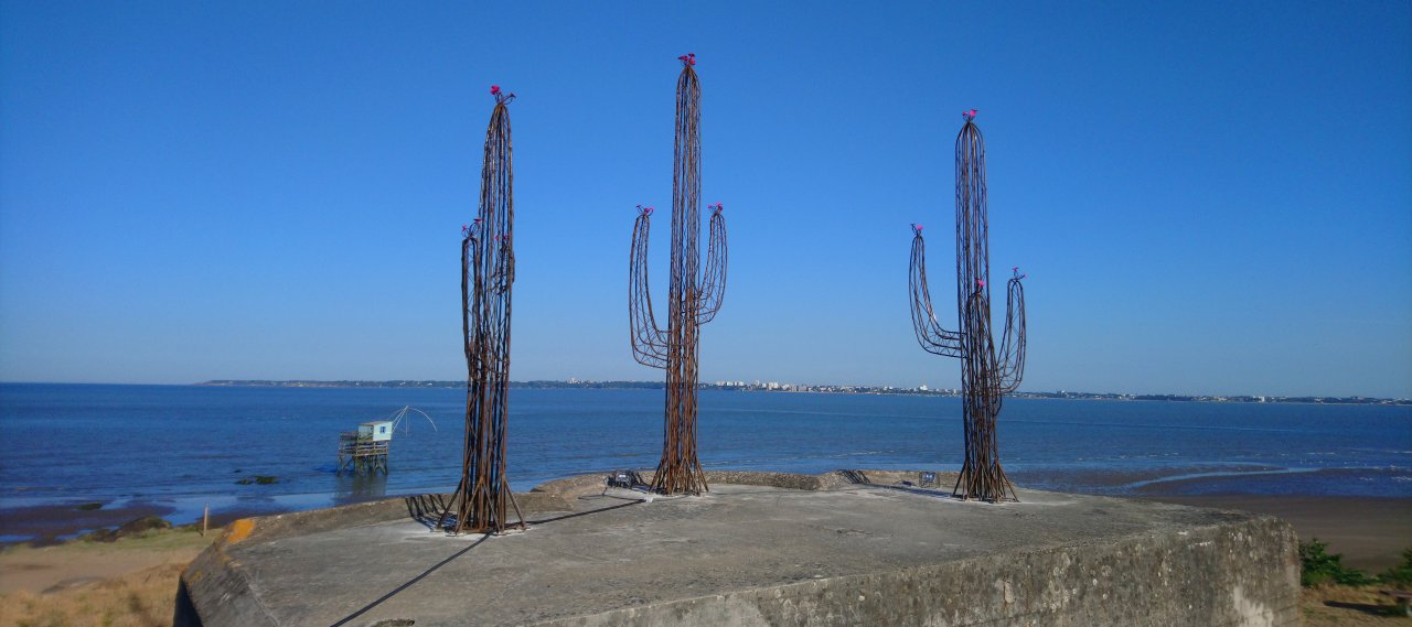 Mirage ? is a sculpture made up of three metal saguaro cacti, measuring 7 metres, 5.70 metres and 4.80 metres respectively. Created by artist Francis Benincà, it was installed in Saint-Brévin-les-Pins (Loire-Atlantique) on a former Second World War bunker. These monumental sculptures were exhibited from June 2022 to March 2023.