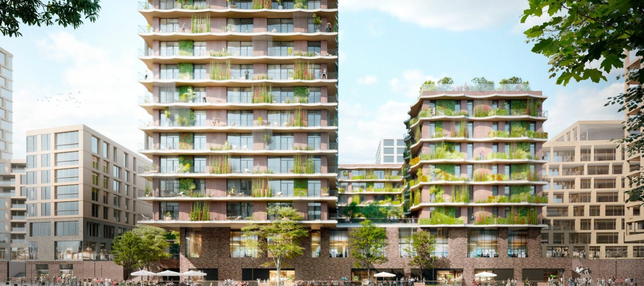 The complex of three buildings is grouped around a green inner courtyard. Furthermore, horizontal green spaces serve not only for communal use but also for the generation of regenerative energy. The cooling and air-cleaning function of the green façade increases the air quality and biodiversity in the entire neighbourhood. The use of recyclable and healthy materials follows the Cradle-2-Cradle principle and will be separable by type, degradable and recyclable.