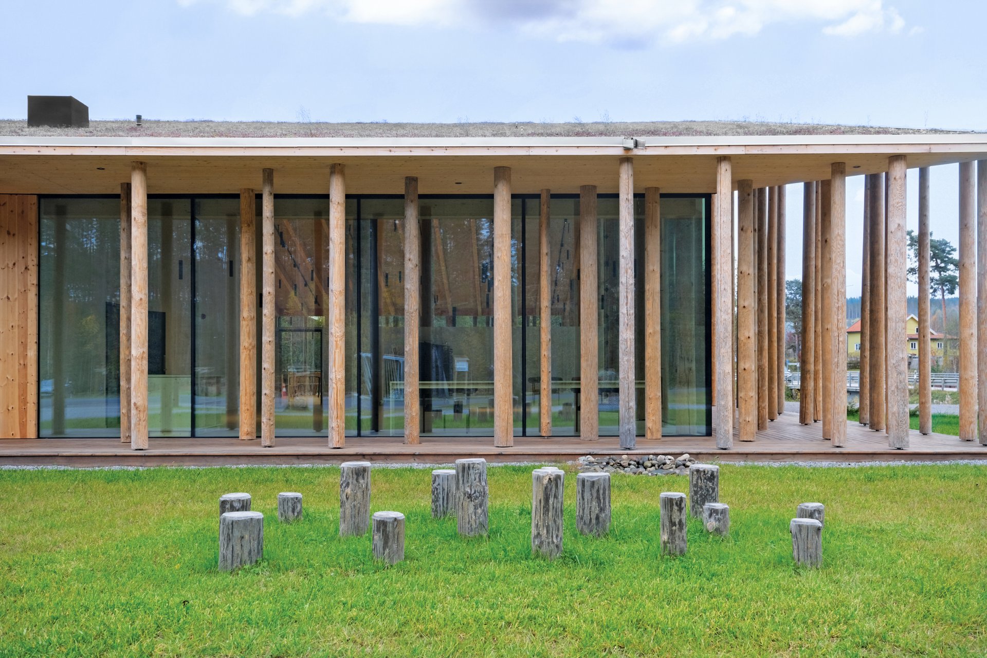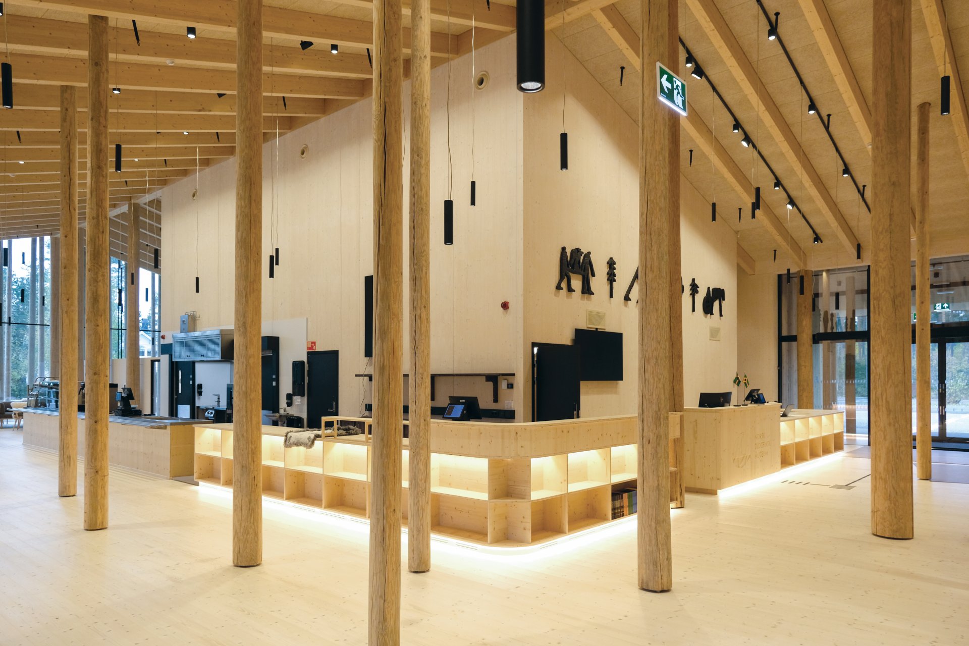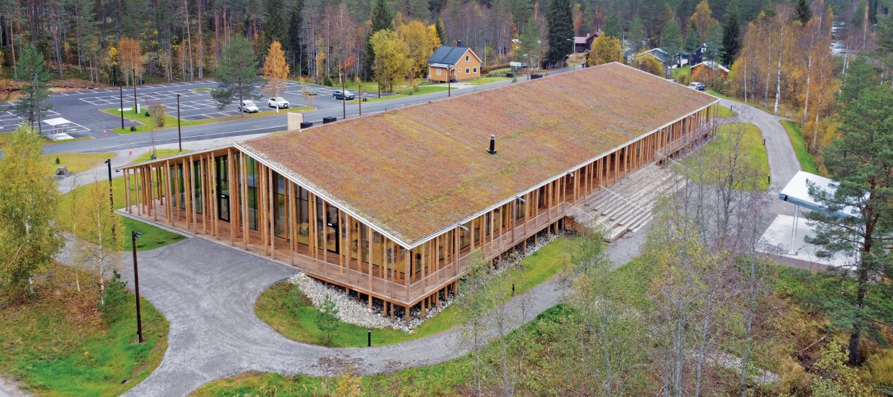 The Norwegian Forest Finn Museum is a unifying resource centre for documentation and research on the Forest Finns (descendants of Finnish immigrants who settled in the forested regions of Norway and Sweden). The building represents a hybrid between forest and house, with an apparently floating roof supported by tree-like columns, and the boundary between indoors and outdoors is blurred through the use of glass façades.