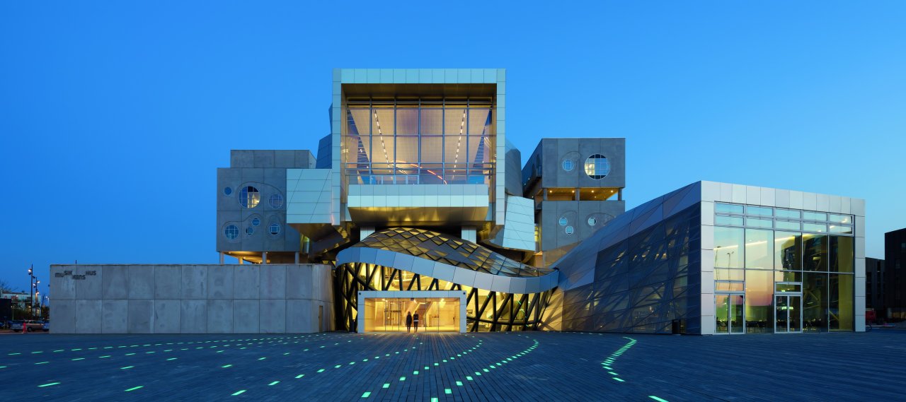 The winning design of the international competition for the "North Jutland house of Music" combines public event spaces with the faculties for research and education of the North Jutland Music Conservatory and the faculties for music education, architecture and design at the University of Aalborg.