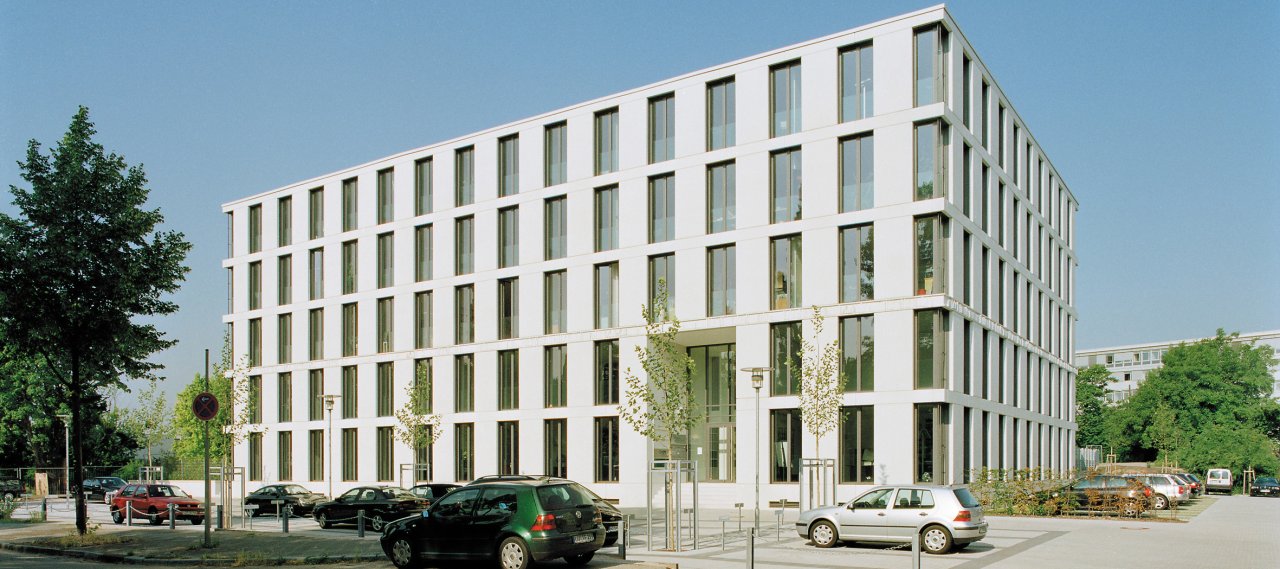 The structure consists of a prefabricated reinforced concrete skeleton construction. The building is characterized by the grid of the circulating load-bearing glazing of the exterior and interior elevation. This bearing construction makes columns at the interior dispensable and provides the possibility of creating flexible spaces. The integrated energy concept incorporates the prefabricated concrete ceiling slabs for the cooling of the building components.