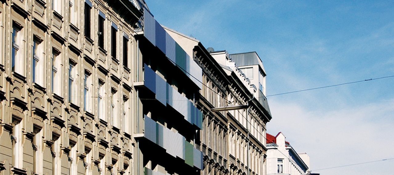 Auf dem Gelände einer alten Schraubenfabrik sind 62 Eigentumswohnungen zwischen Urbanität und Naherholung entstanden. Im Inneren der Anlage befindet sich ein "Dorfplatz", um den Hofhäusern angeordnet sind. Ein zur Straße orientierter Gemeinschaftsraum bindet die Anlage an das Quartier an. Die Fassade prägen viele in Grün- und Grautönen gehaltene, unregelmäßig angeordnete Metalllatten, die den raumhohen Fenstern vorgesetzt sind und der Gebäudevorderseite ein spannendes Erscheinungsbild verleihen.
