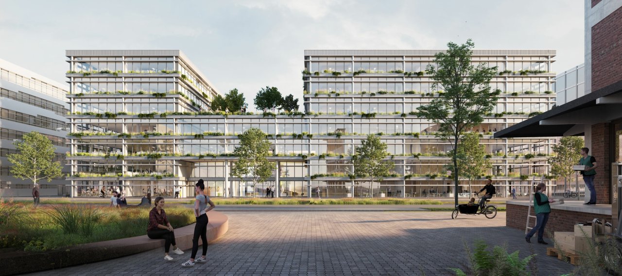 The office building Grøn is planned as a new multi-storey building with a sustainable energy concept. Bollinger+Grohmann is responsible for determining the technical and building law requirements, as well as the fire protection concept. 'Grøn' is the third building project that Bollinger+Grohmann is working on with the client Überseeinsel GmbH, following the 'Stephanitor Höfe' and 'Wohngewächshaus' projects.
