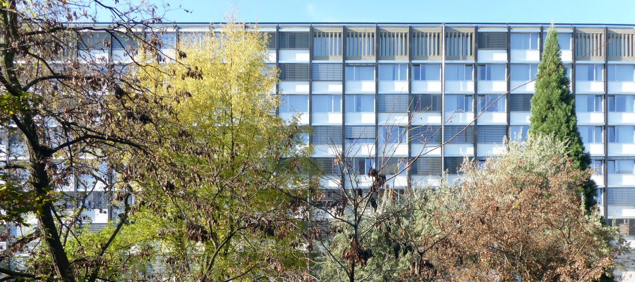 The Philosophicum of the Johann Wolfgang von Goethe University in Frankfurt is a listed building. In 2011, B+G conducted a feasibility study on behalf of Frankfurt’s housing association ABG about the potential conversion of the seminar building into a residential building. After the sale of the property there has been built a student dormitory with 270 apartments, a day-care centre and a cafe on the ground floor. The listed building has been complemented by a new five-storey building. The extension was adapted to the architectural style of the adjacent Philosophicum building and structurally connected to it by the stair towers.