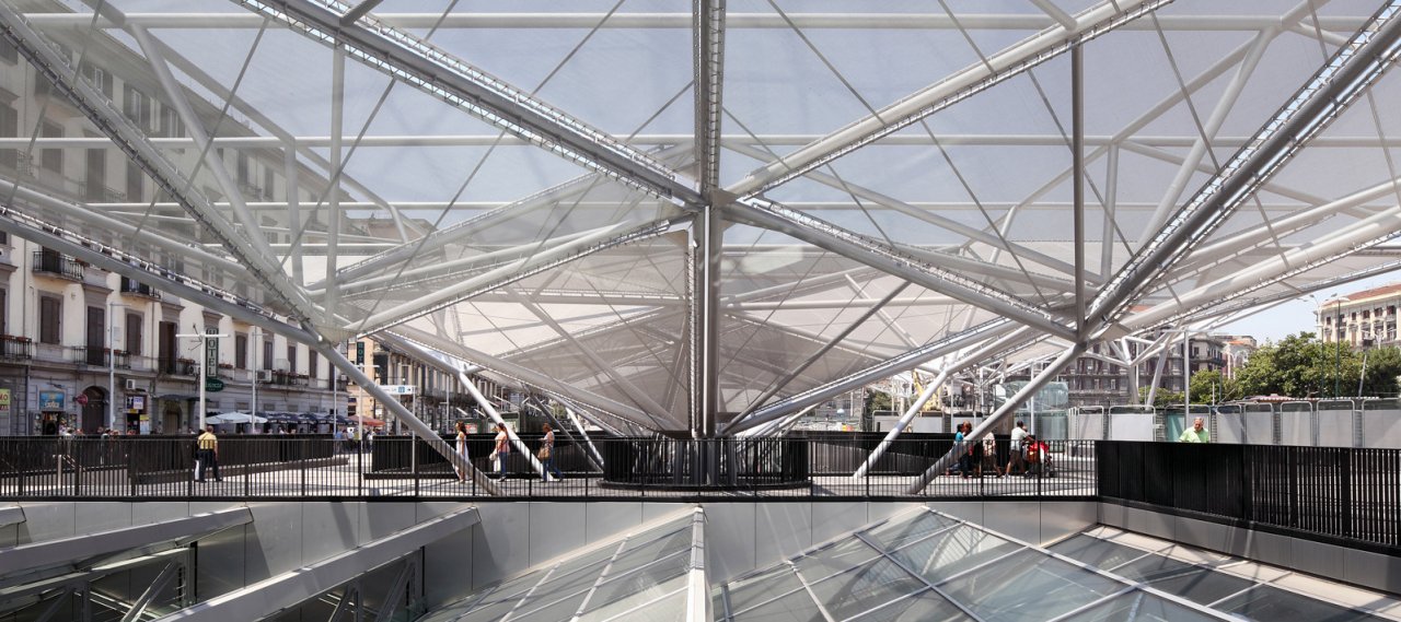 The Metro Station Garibaldi is located in the direct neighbourhood of the Central Train Station Nervi in Naples. A 300 m long and 20 m wide trench is the extension of the entrance to the station.