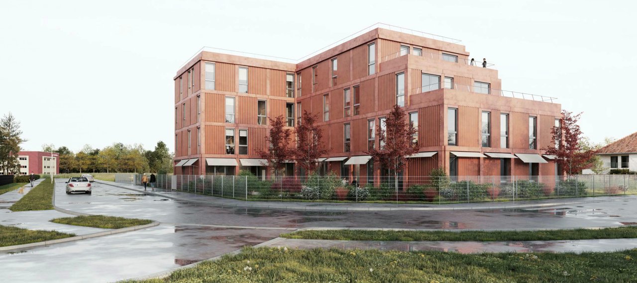 The project is located in Savigny-le-Temple, within the Villebouvet mixed development zone. It involves the construction of a multi-public medico-social centre on three levels, with a surface area of around 1,800 m². The programme includes four residential units, a daycare centre, a micro-crèche, a medical centre and offices. The L-shaped building has a vertical load-bearing structure, visible from the outside, and precast concrete fascias covering the slab nosings. Façade recesses allow the creation of accessible terraces.