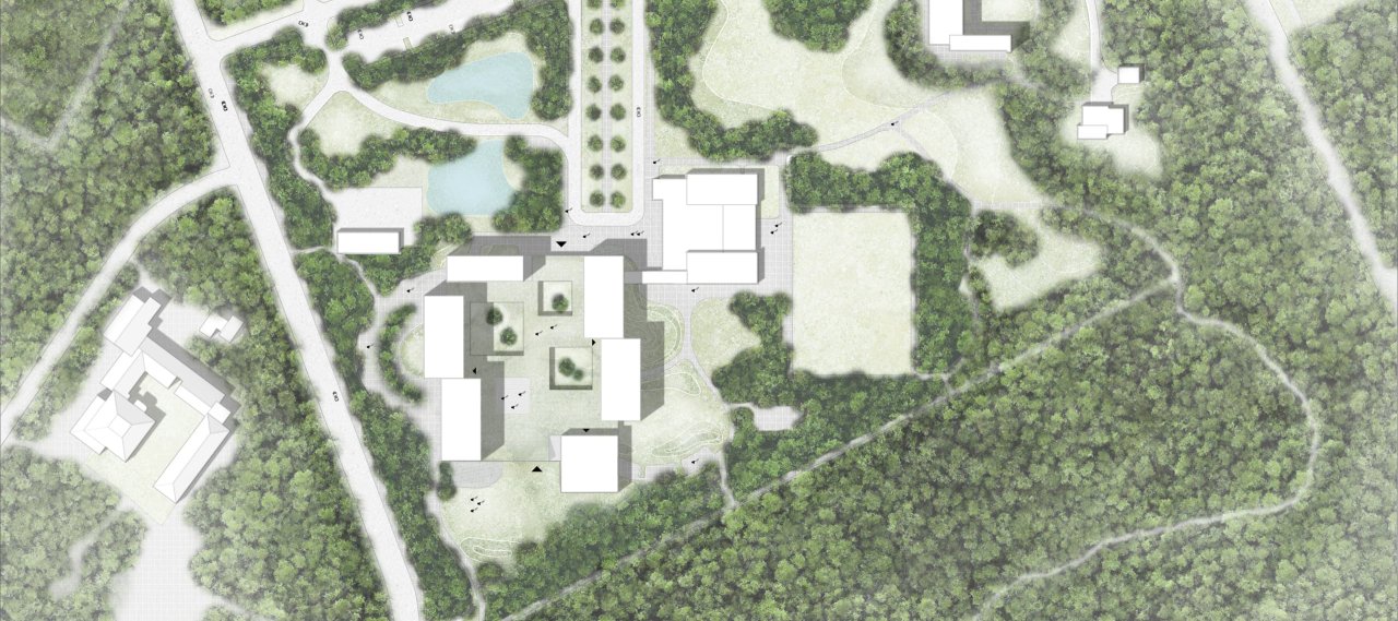 The DRV Bund is planning to build a new replacement building at the Hellbachtal Clinic site to meet modern rehabilitation requirements. The new building will be constructed while the neighboring existing buildings remain in operation. The design will feature a base floor that houses the functional areas and thematically zones them. On top of this, four structures will be grouped, with the storeys staggered from north to south. The six-storey structure in the north will be used for examination, treatment, and management. Hospital rooms will be located in the west, east, and south structures. Wrap-around balconies are planned for the upper floors of all structures except the northern one. The northern part of the base storey will have a partial basement, which will house storage, changing rooms, and the building services center.