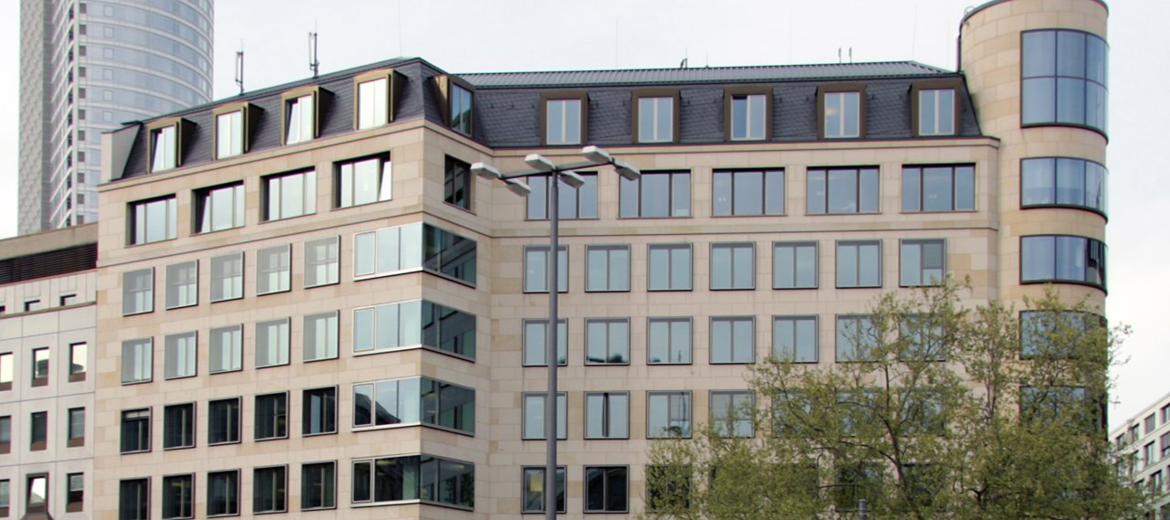 The construction project involved the modernization of an existing office building from the 1970s, situated in a prime city centre location in Frankfurt, opposite the main railway station. The result is 11,900 m² of space spread over nine floors and 156 underground parking spaces. The building's design, materials, and colour choices are inspired by the circular development of the station