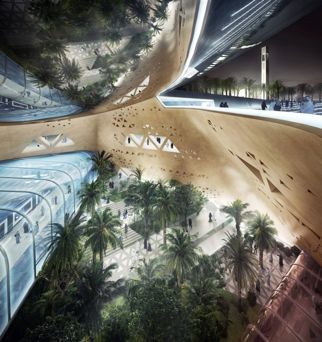 Vi bisto Snøhetta med designet av de grunnleggende fasadeelementene til Qasr Al Hokm metrostasjon i Riyadh, som ligger i et kryss mellom to tunnelbanelinjer.