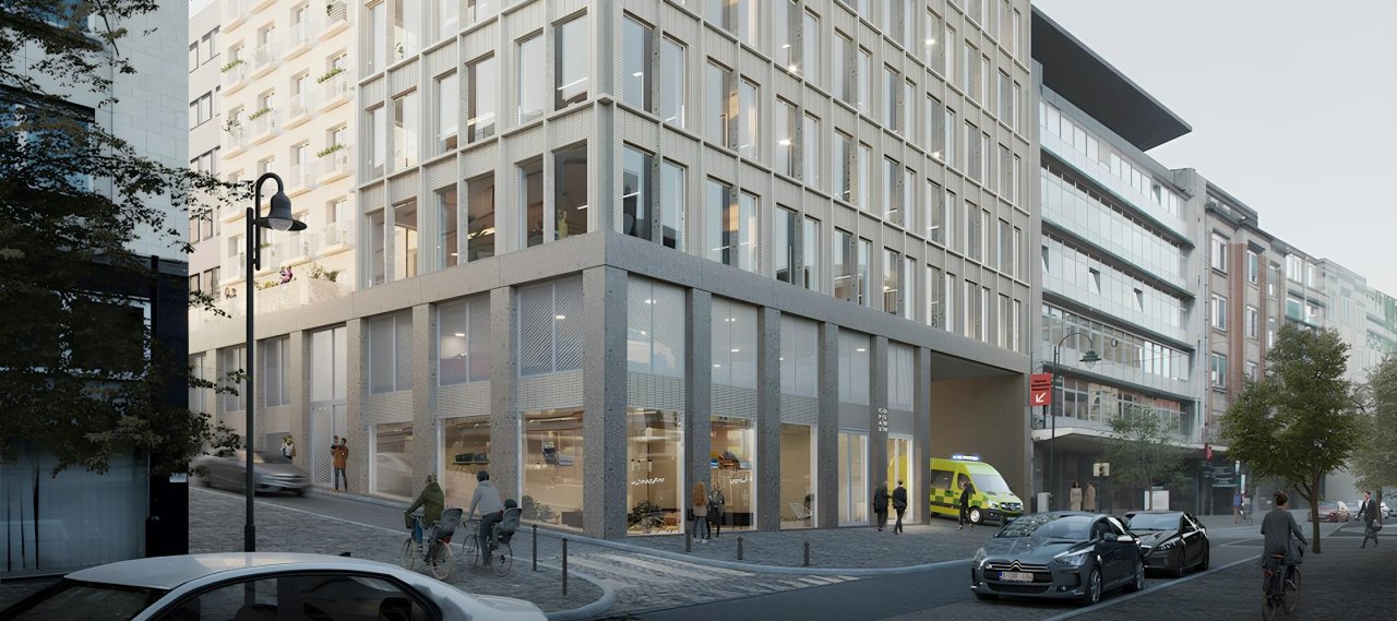 The new OCMW Brussels building is an 8-storey mixed-use project on the corner of Rue Haute and Rue de l’Abricotier, in the heart of the Marolles. Completing a block shaped by UMC Sint-Pieter and existing OCMW offices, it brings together offices, 14 social housing units, a retail space, a crèche for 20 children, and an emergency access passage.