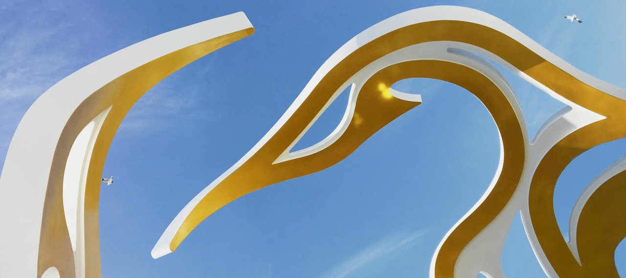 The Welcome Arch consists of two identical but mirrored cranes. The cranes will have a glass-fibre reinforced cladding with a steel frame inside. A secondary substructure is used to connect the cladding in areas between the two main portals. The cladding is not acting as a structural element in regards to the structural system and is not a part of this study.