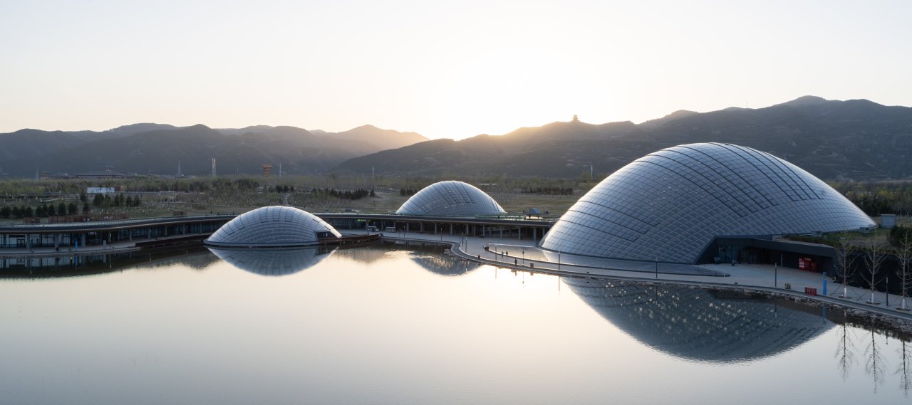 The overall structural concept for the complex draws from traditional Chinese wood roof structures and reinterprets the structural and geometric logic to combine the loading aspects with desired aesthetic expressions. Three main principles were considered: stacked and interlaced beam layers, stages, and scaling layers—adding or removing layers towards supports or edges and proportion between space and structure.