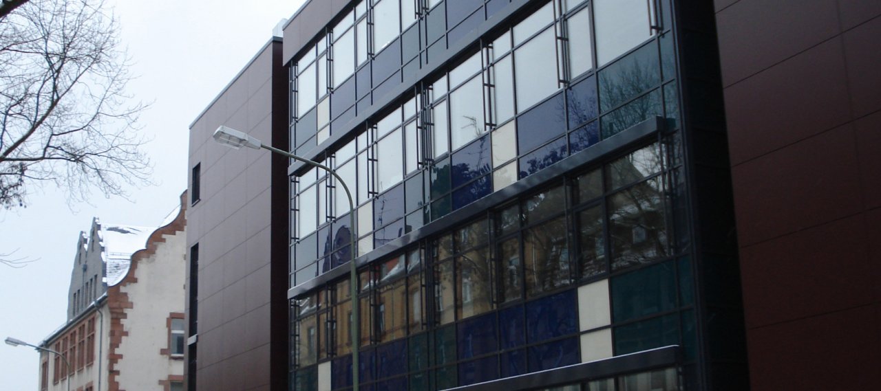 The city of Offenbach has refurbished and extended three grammar schools to passive house standards during operation. At the Rudolf Koch School (1), a cafeteria, a massive pavilion built to low-energy building standards, was constructed. Classrooms and a three-storey media centre have also been built.