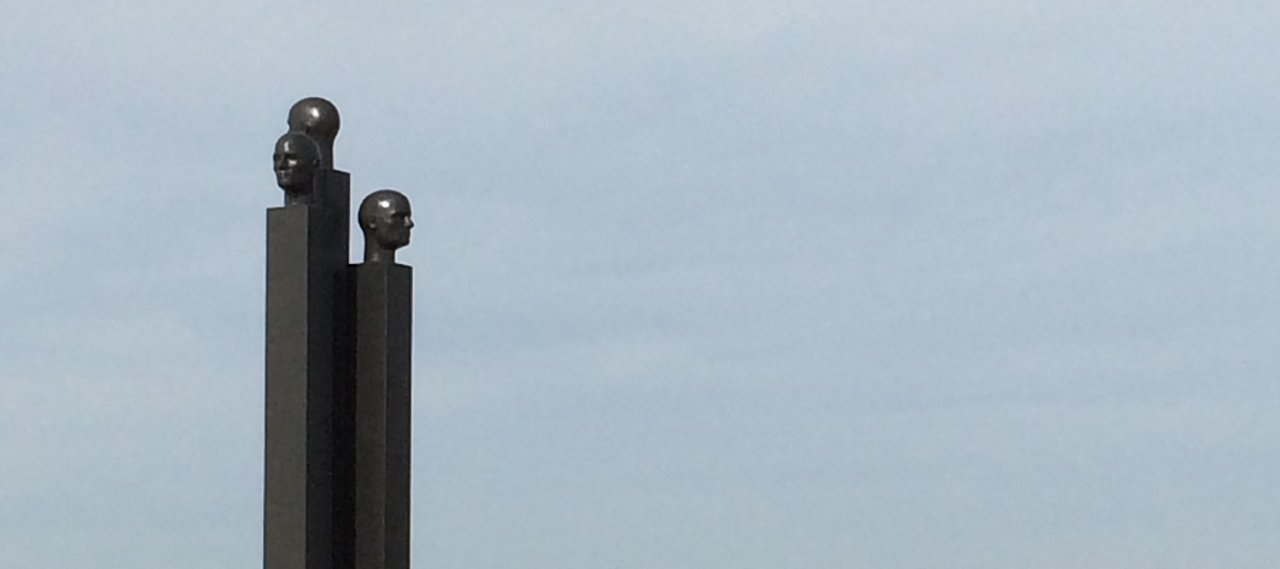 The three monumental Drie Wijsneuzen statues, with their monolithic silhouette and streamlined form, punctuate the coastline of De Panne as part of the Beaufort 2018 art event. The three parallelepipedal bases, each one is one metre wide and variable in height, are made of glass-fibre reinforced plastic (GRP) and dyed in the mass, and the three heads made of the same material are 1.7 metres high.