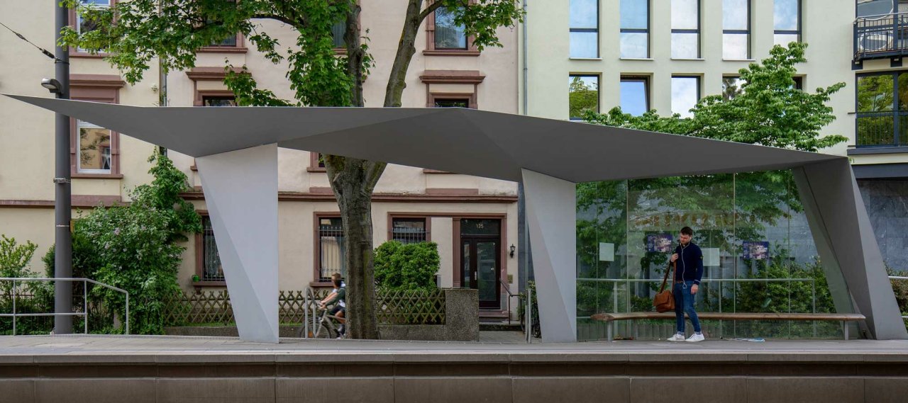 A special feature of this stop are the roofings on the platforms which appear as free-standing sculptures without front or backside.