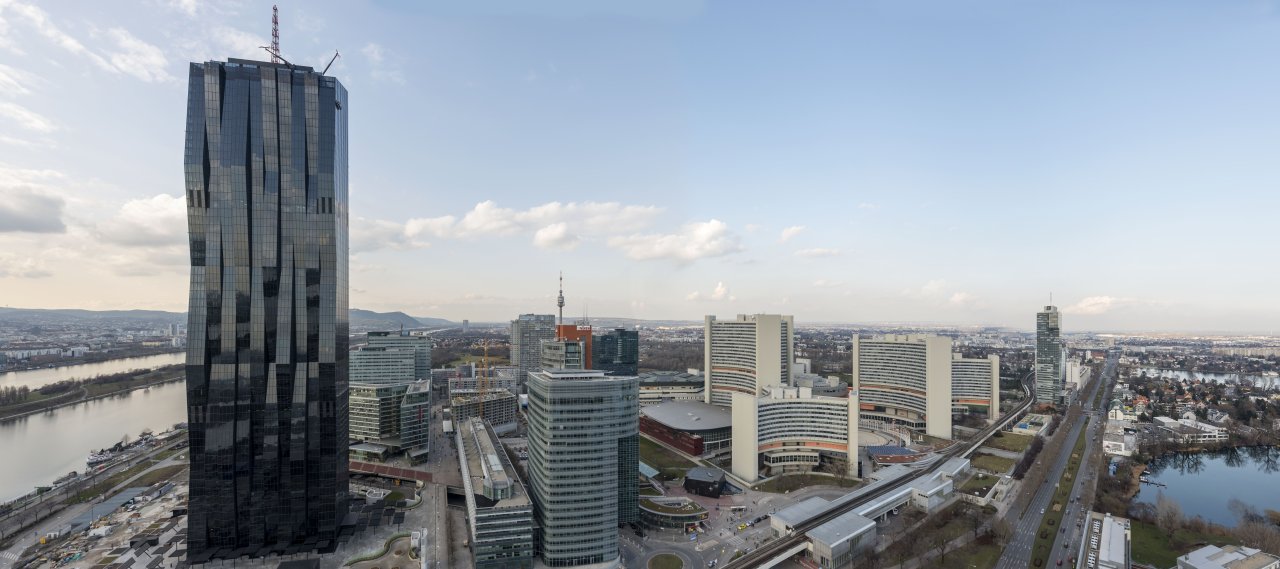 Located at the northern riverside of the Danube, Vienna DC Tower 1 is with its 220 m in height, the tallest building in Austria and an important landmark for Vienna. The slender mix-use building houses a hotel, offices that eventually can be converted into living quarters, and a restaurant with a sky bar on the top of the tower.
