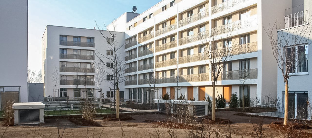 With reference to this building project, 90% of recycled concrete were used for the building construction. The buildings were designed as passive house standard.