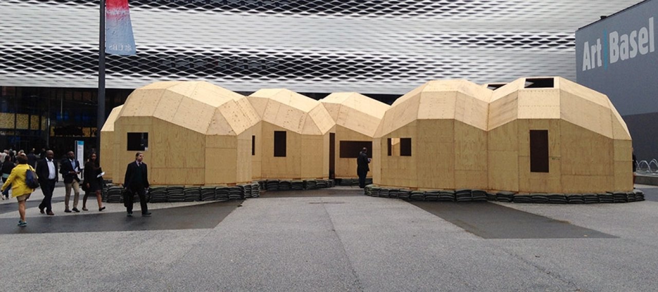 This pavilion was realized for the Art Basel 2016 fair based on the “Zome House” design from New Mexico by Steve Baer in 1971. The original structure includes 11 polyhedral forms, named zomes, composed of wood/aluminum panels.