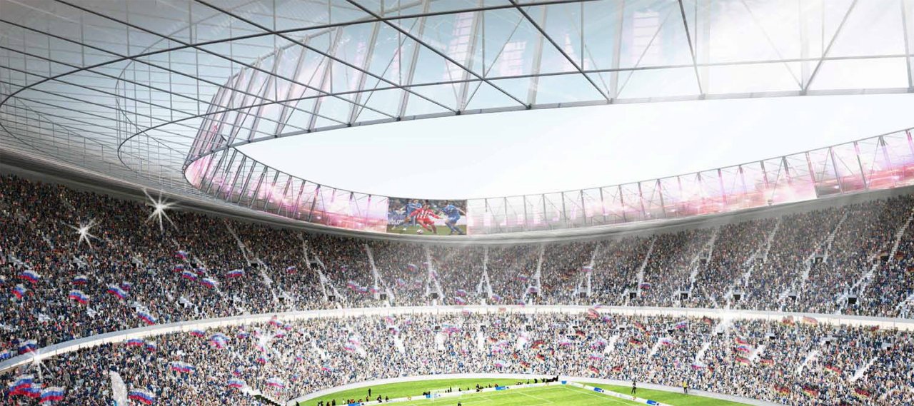 For the 2018 FIFA World Cup in Russia, the existing Luzhniki Olympic Stadium was to be demolished except for the historical façade. Within the limits of this historic façade, a new stadium was designed. The design of RKW Rhode Kellermann Wawrowsky also allows for hosting track and field events as part of future Olympic Games. Based on those requirements, the design resulted in a special geometry with a wavelike top of the stadium tribune.